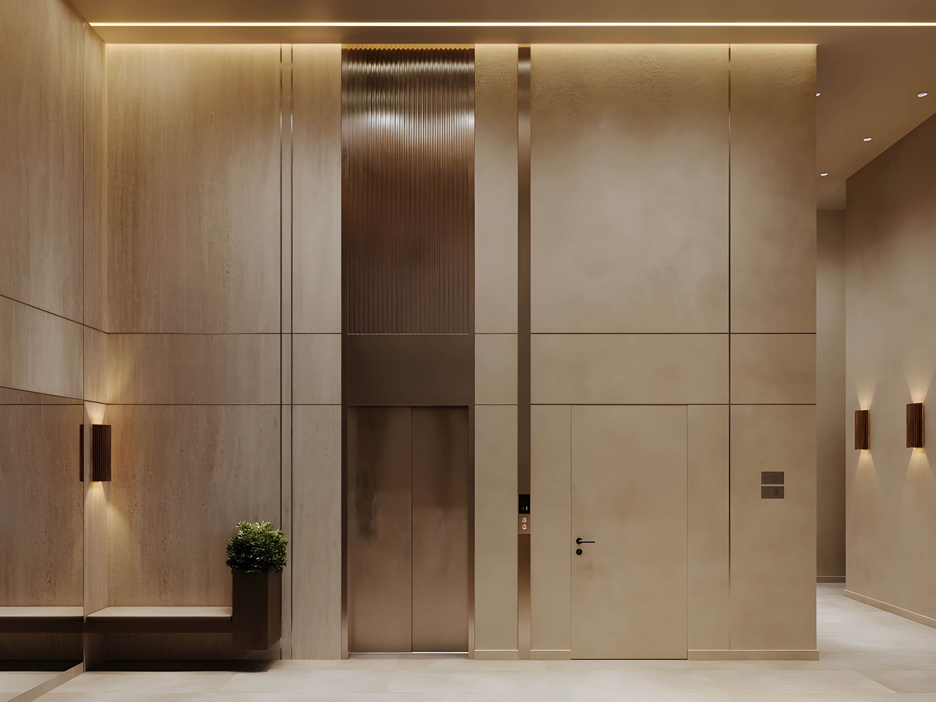 Пространства входных групп в Sokolinn Park спроектированы с особым вниманием к атмосфере и первому впечатлению. Лобби комплекса — это не просто место для ожидания или прохода, а полноценное общественное пространство, отражающее уровень и эстетику всего проекта. Здесь объединены функциональность и дизайнерская проработка: современные отделочные материалы, лаконичные формы, световые акценты и мебель премиального уровня создают ощущение статусного уюта уже с первого шага в дом.